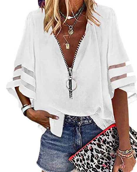 Stand out wherever you go wearing the Women'sZipper V-Neck Long Sleeved Flowy Top. It is characterized by its oversizedzipper pull and deep V-Neck complete with semi-sheer sleeves.