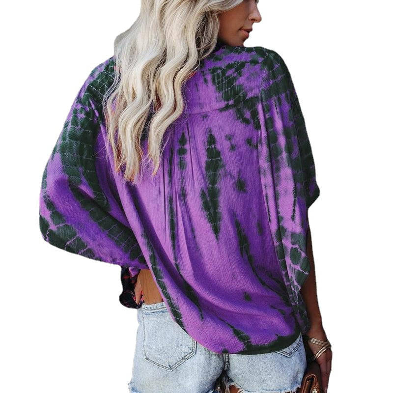 Ajuste seus conjuntos casuais usando a camiseta íngreme feminina de manga de manga de 3/4 de comprimento. Esta camisa casual solta é arejada e fresca, com tons de tie-dye e padronização.