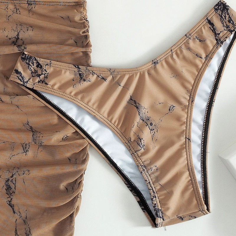 Terno de biquíni dividido de três peças para looks versáteis de praia