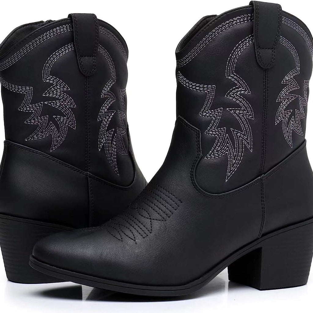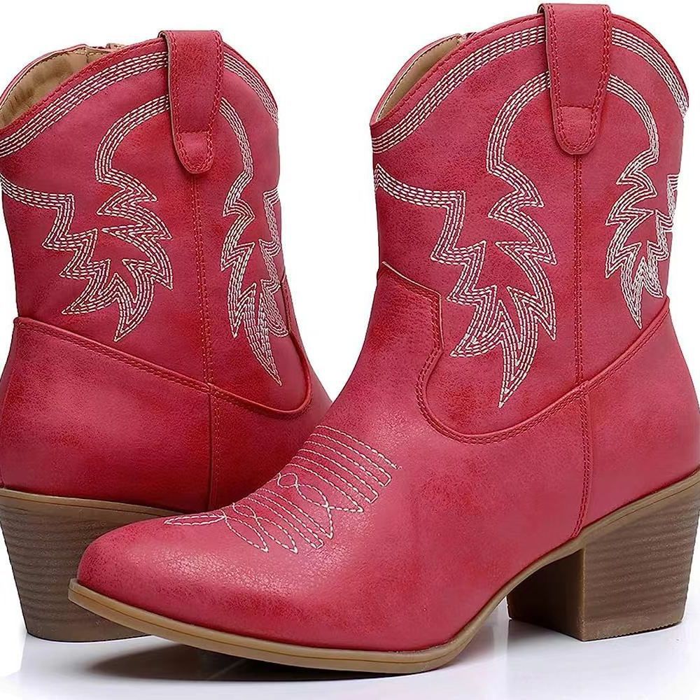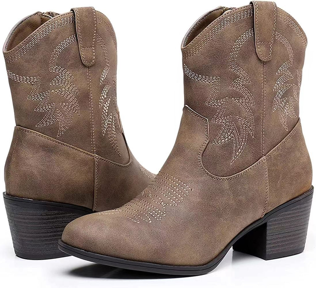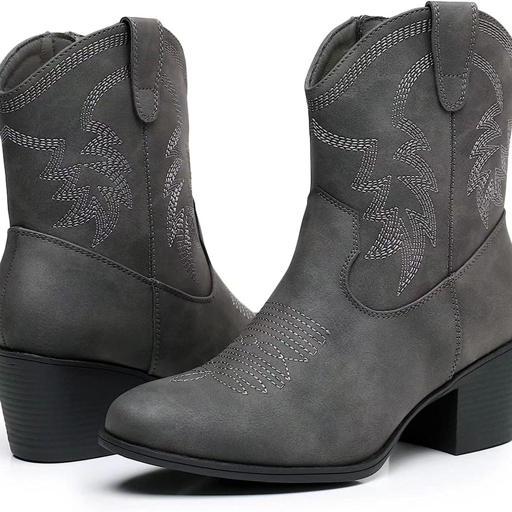 Women's Trendy Decorative Stitching Leather Ankle Height Cowgirl Boots