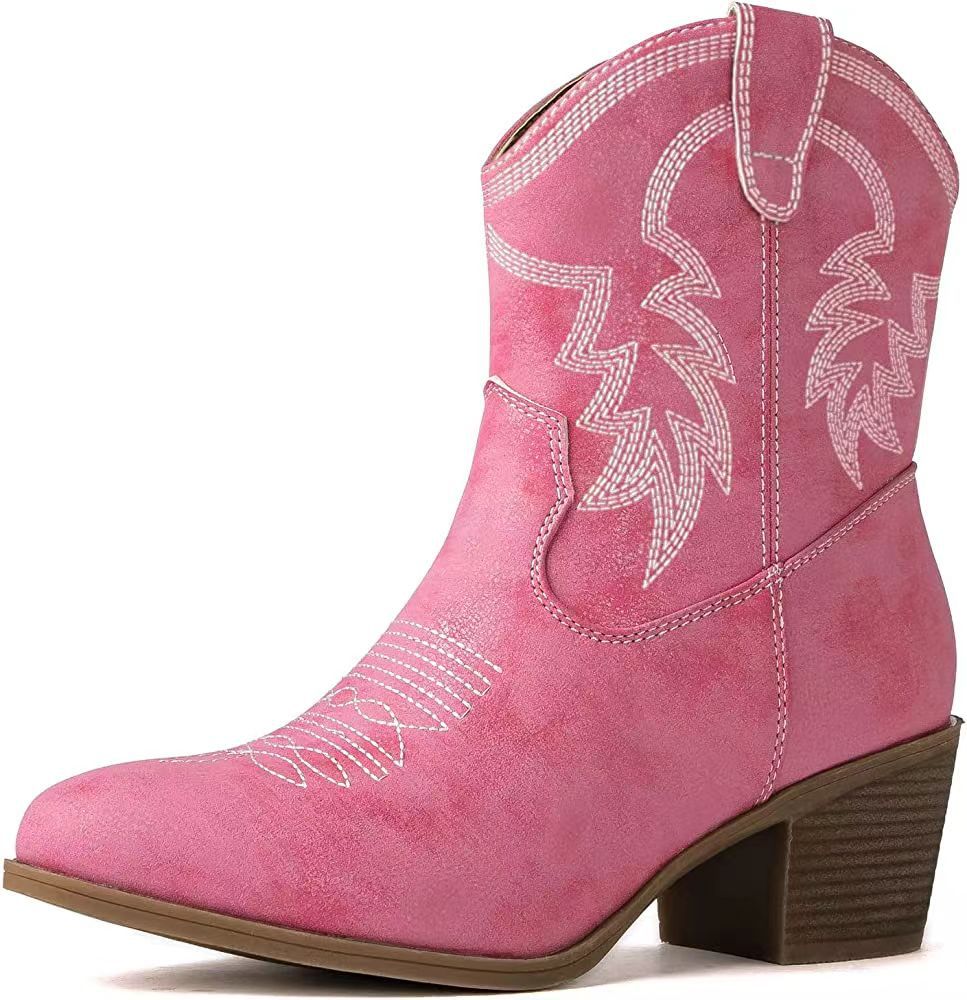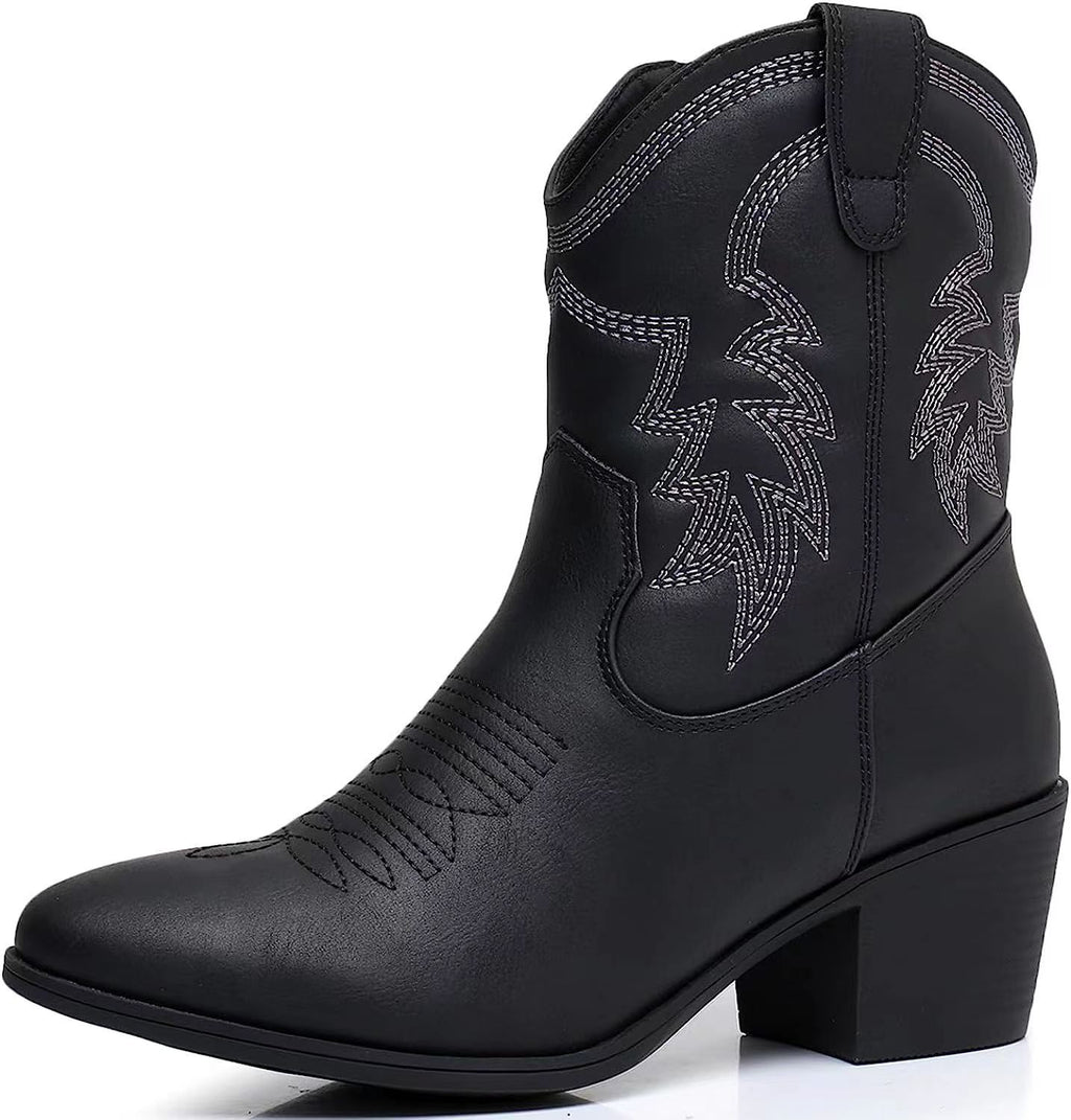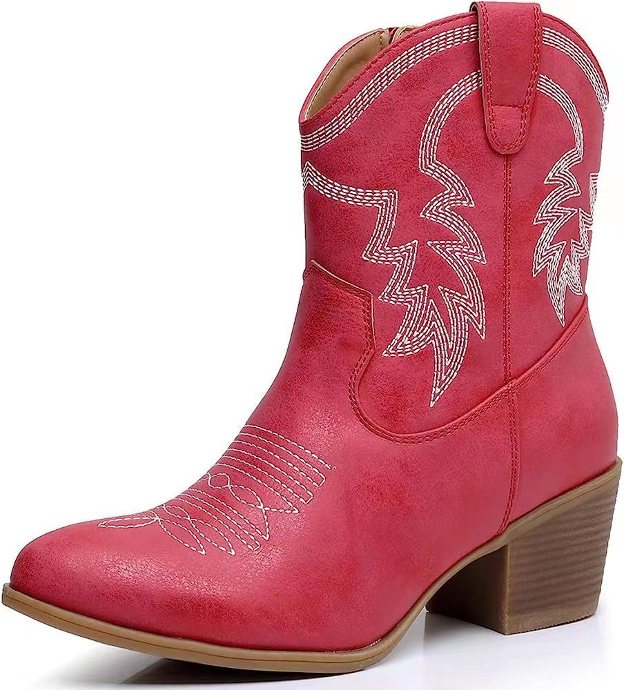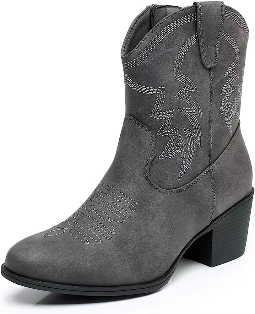Women's Trendy Decorative Stitching Leather Ankle Height Cowgirl Boots