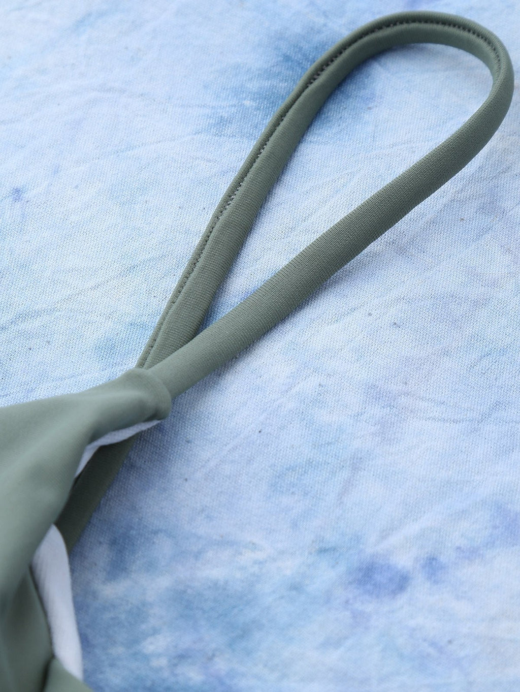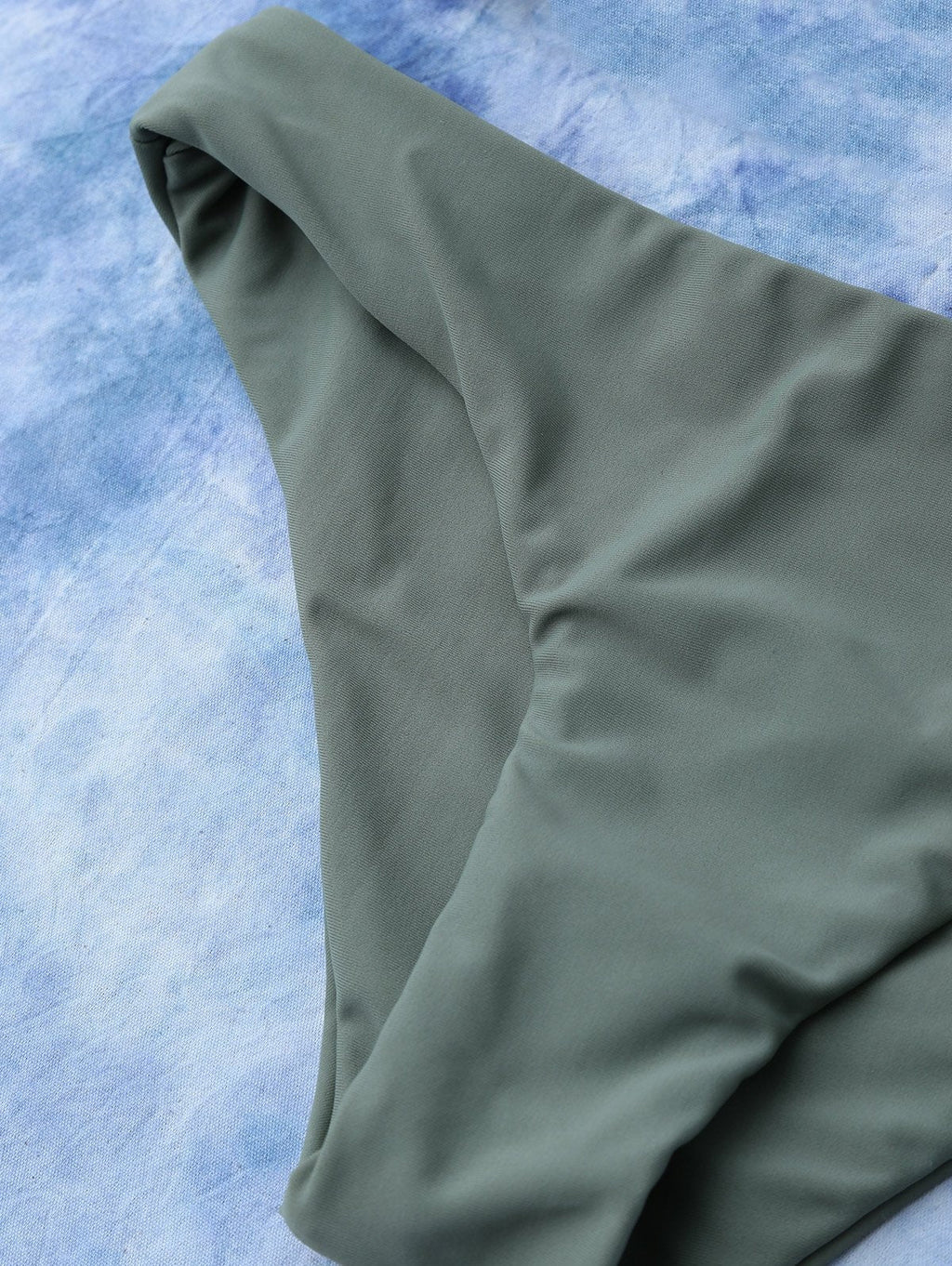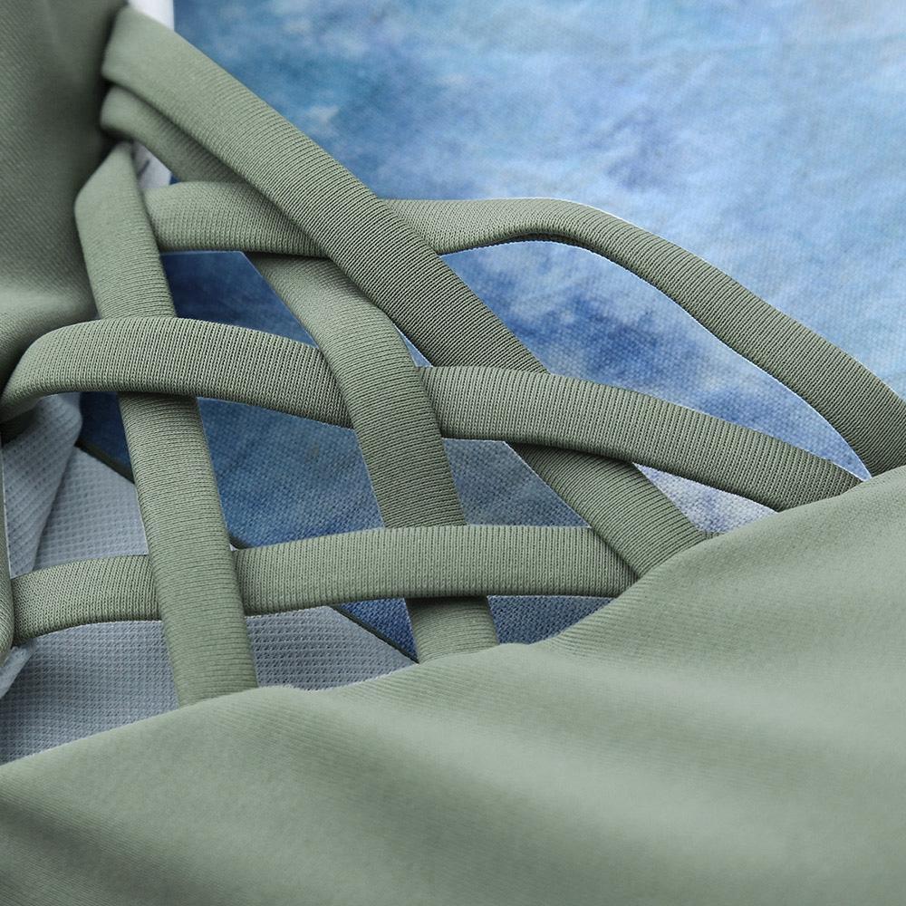 光滑,乾淨的泳衣具有縱橫交錯的綁帶晶格前套套式比基尼鞋和時髦的泳褲,填充了。