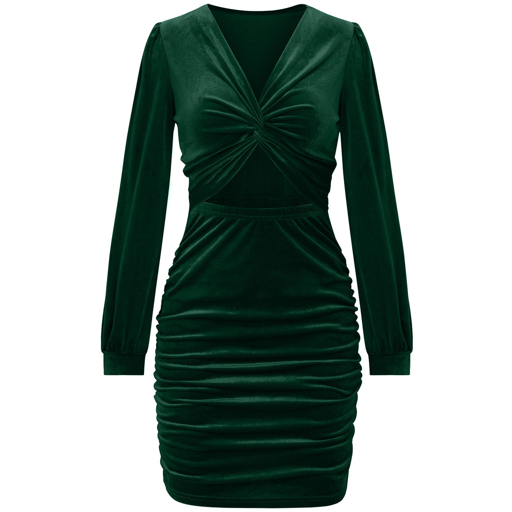 當您穿著女子天鵝絨般的作物上衣和迷你裙子時,偷了節目,其中包括低V領,中腰切口和長袖。