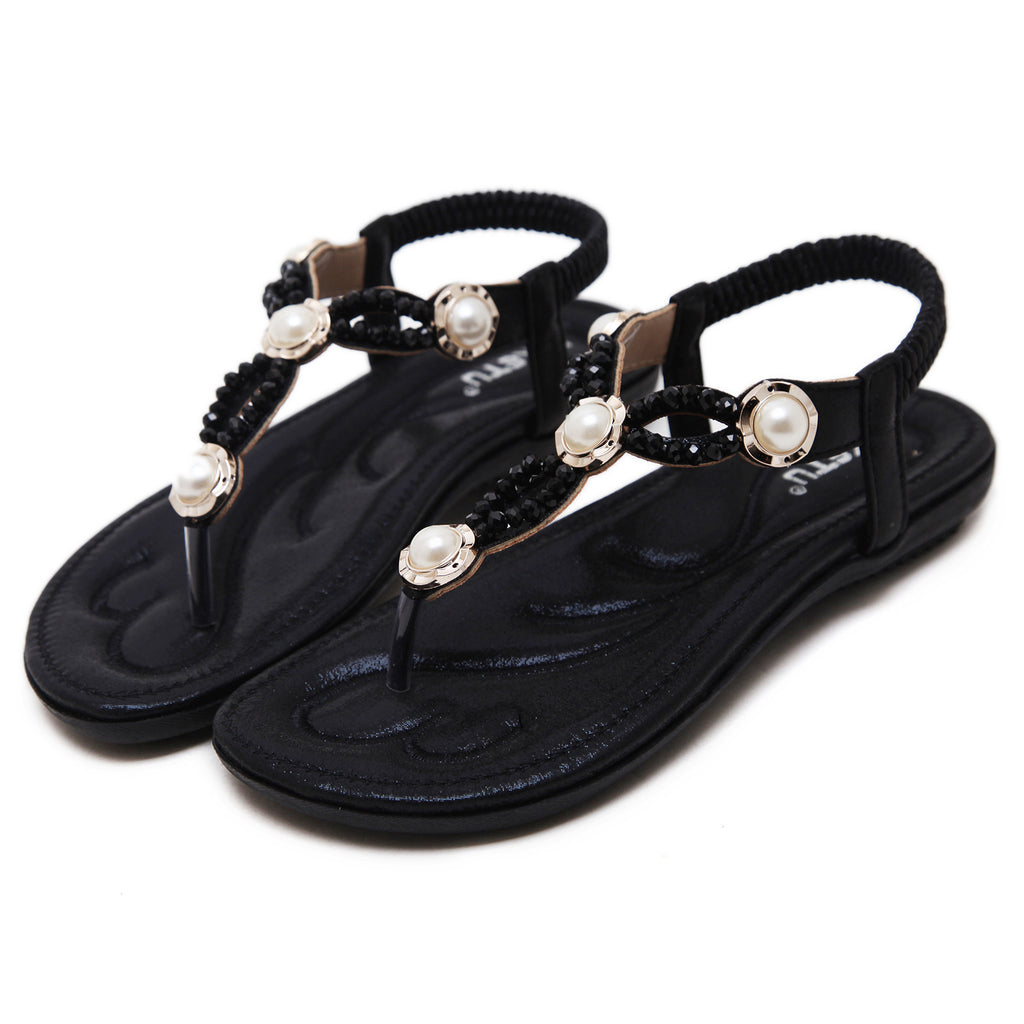 水鑽和人造珍珠綁帶腳踝涼鞋