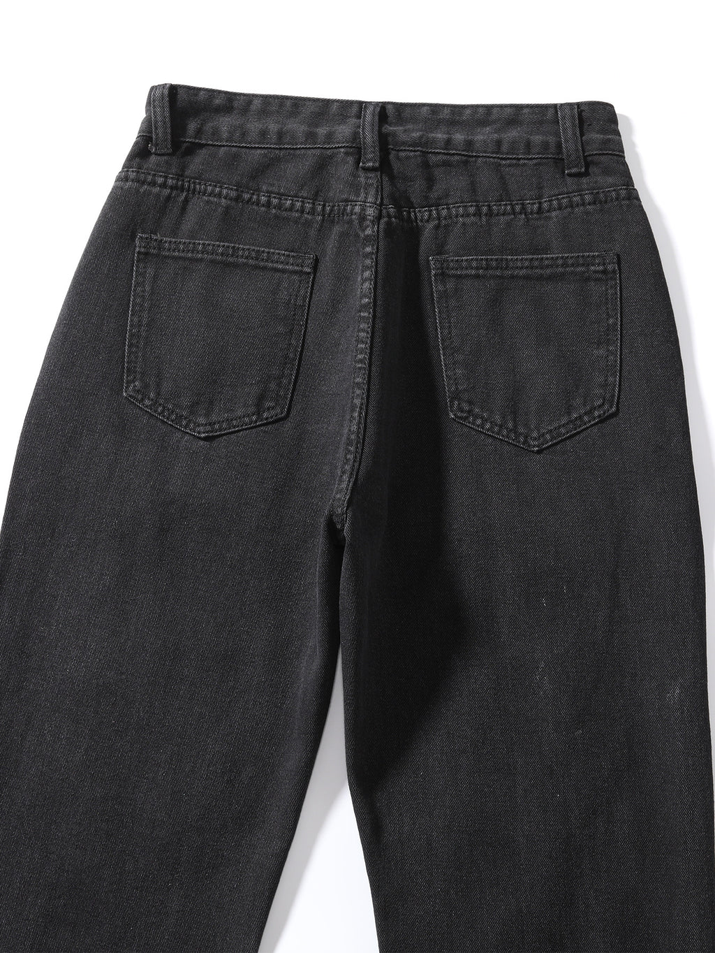 婦女高腰部寬鬆的牛仔褲,撕裂和眼淚