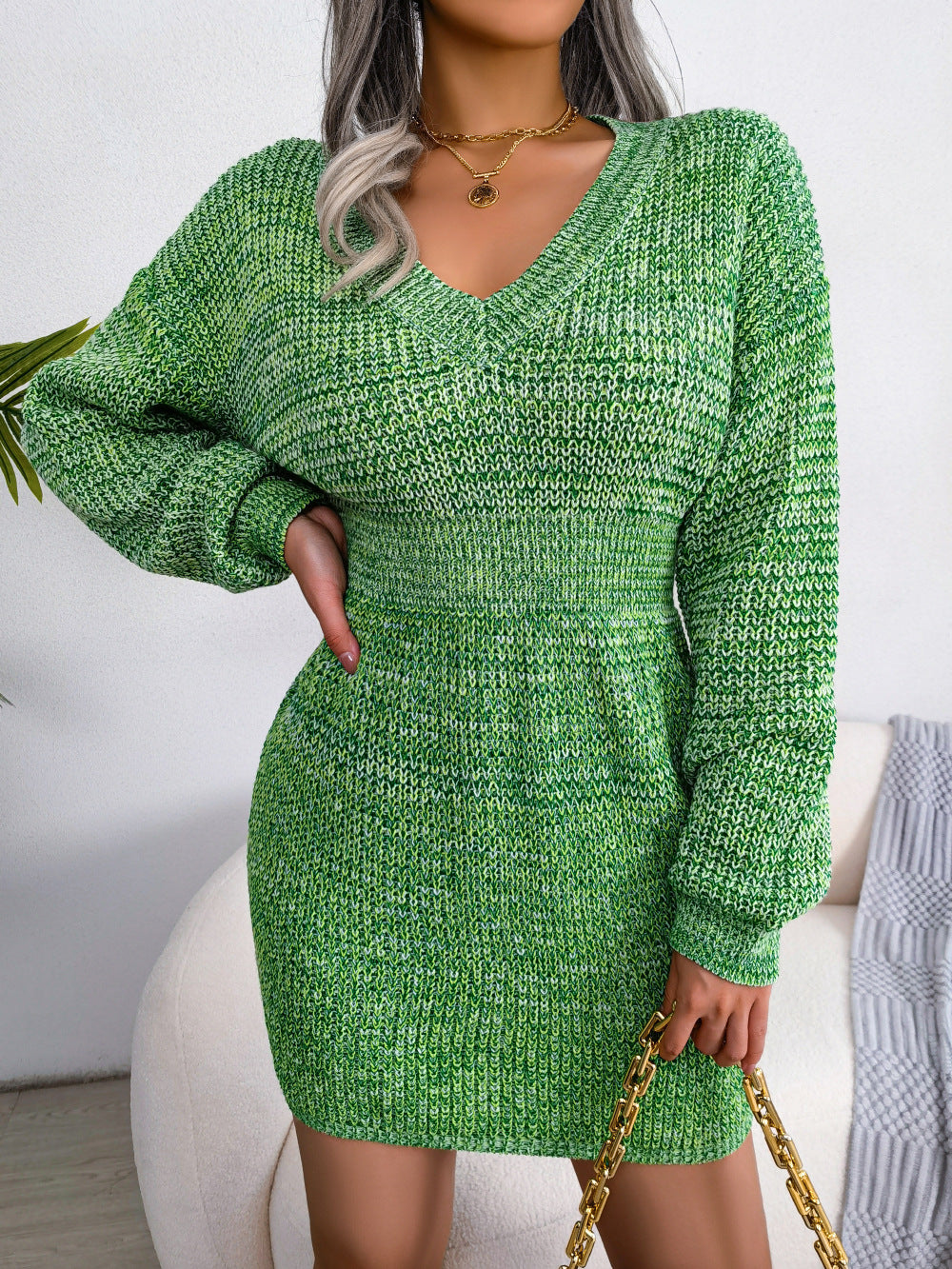 穿著女性充滿活力的毛衣連衣裙,穿著超大的袖子,在衣櫃中脫穎而出。它有日落顏色,天藍色或草綠色的色調。