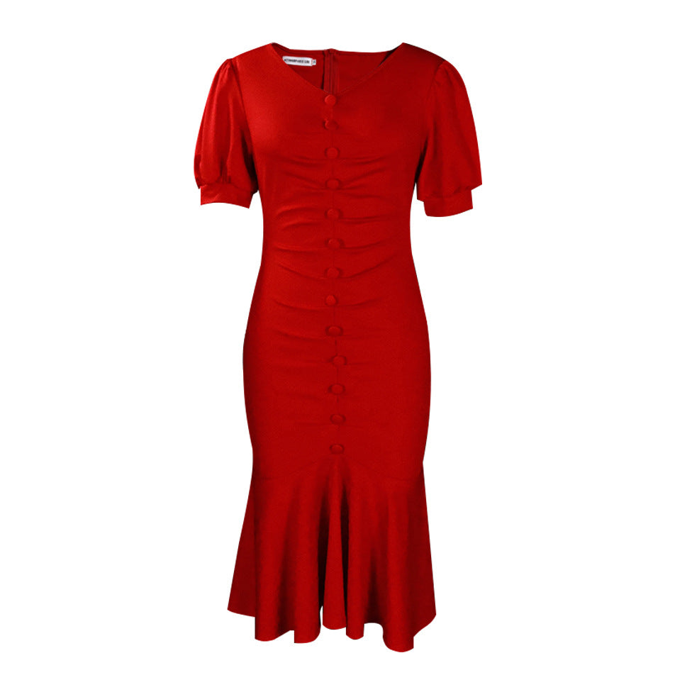 這個女士的形式貼合鈕扣沿著吹氣袖子的前米蒂連衣裙非常適合白天或夜間穿著。它具有您選擇的顏色選擇,以適合您的口味和時尚感。