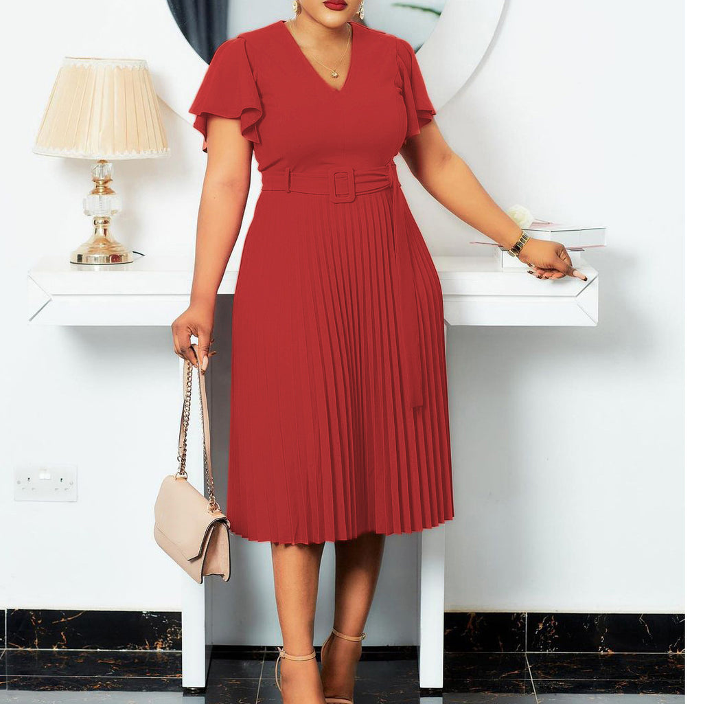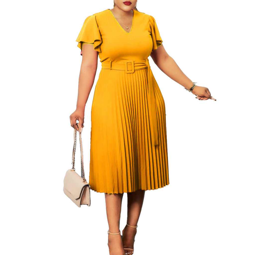 出去吃晚餐,早午餐以及穿著荷葉邊袖子的女子V領A線裙子時,看起來時尚可愛。它擁有腰腰,以炫耀您的身材和小V領。