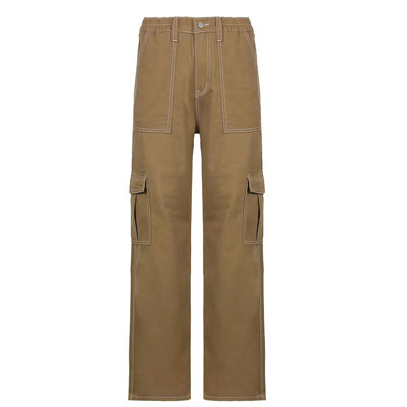 Elevate your streetwear in the Women’s High Waist Wide Leg Pants with Decorative Stitching. The geometric pattern of the stitching gives them a modern look.