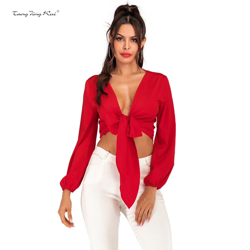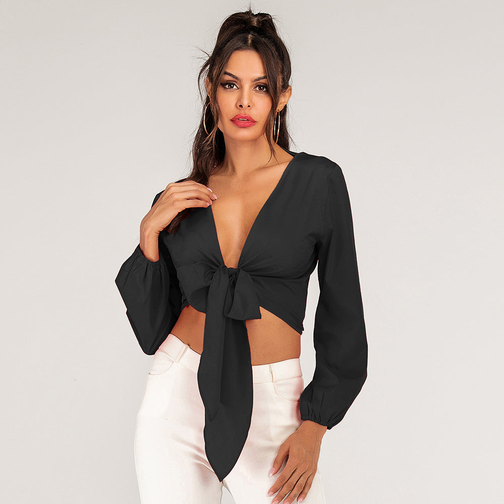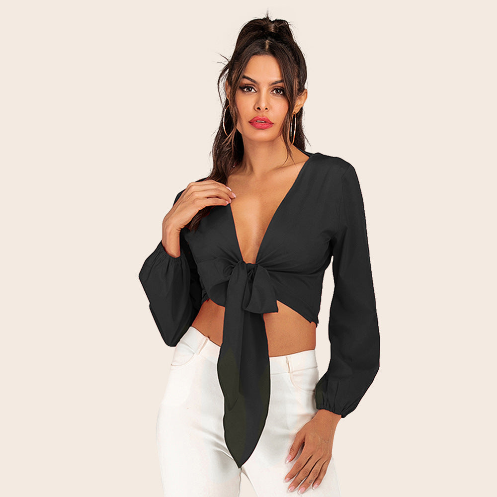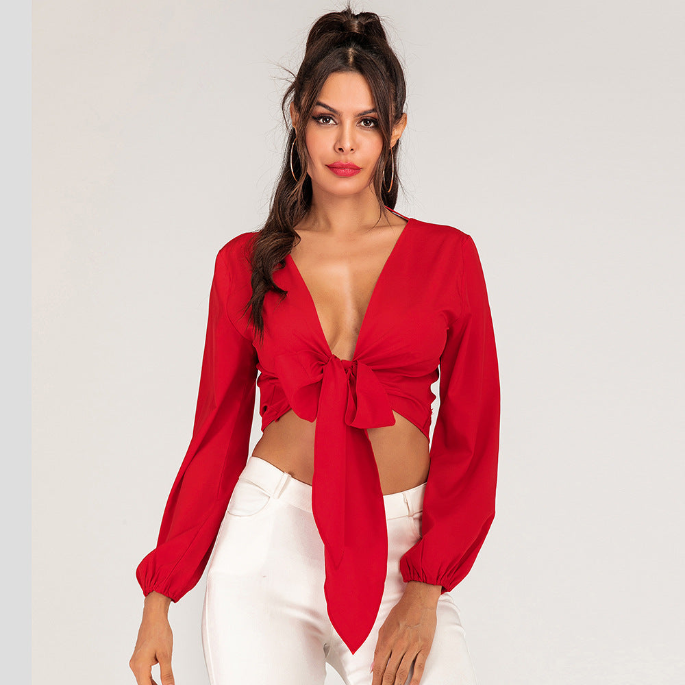 Steal the show when you walk in wearing the Women's Tie Waist Backless Crop Top with Long Sleeves. This stunning top comes in your choice of black, white or red.